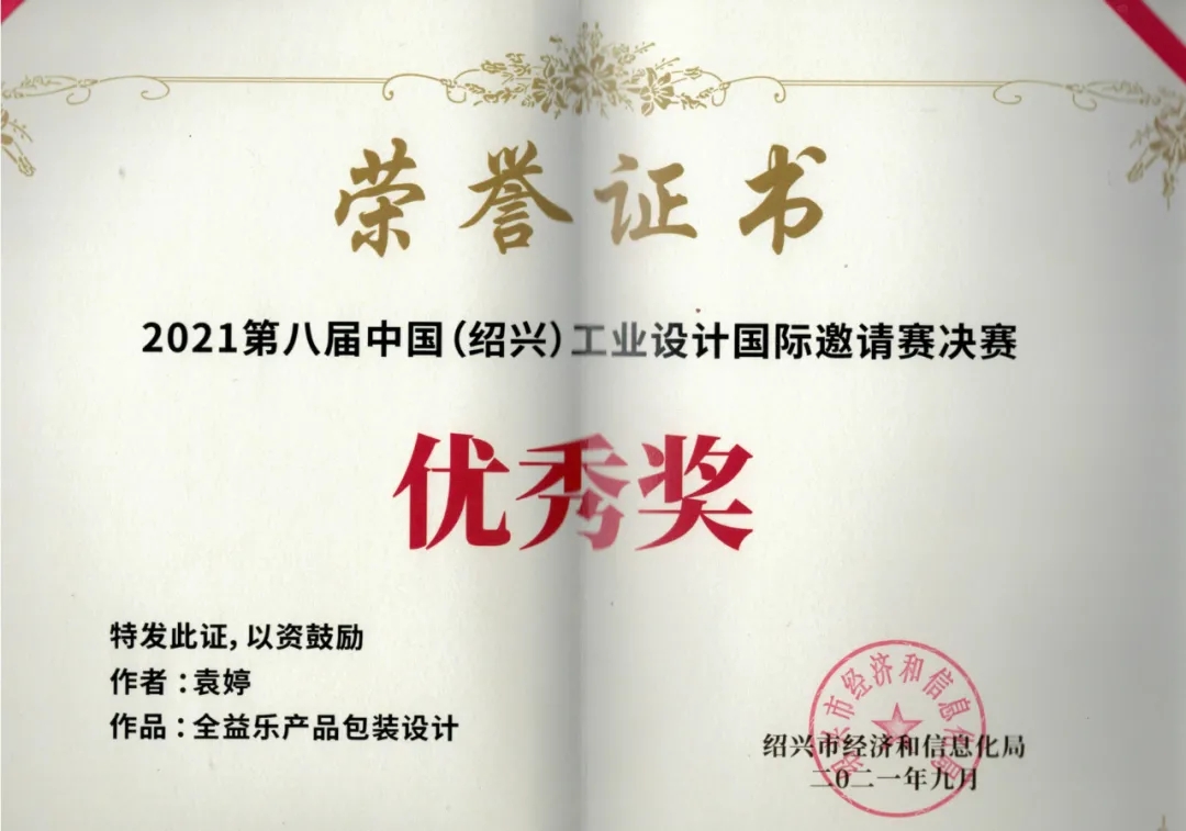 我司設(shè)計的全益樂產(chǎn)品包裝在比賽中獲得優(yōu)秀獎。