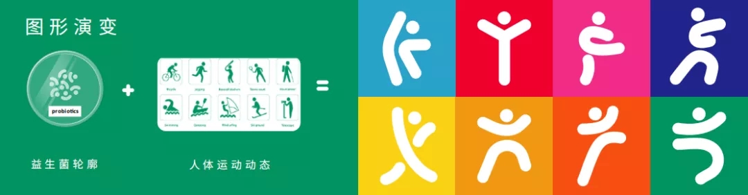 此次包裝主題為“青春洋溢的益菌運動派對”,以益生菌輪廓與人運動形態(tài)相結(jié)合,演變?yōu)楫a(chǎn)品主視覺圖形,倡導健康飲食、合理運動的生活理念,實現(xiàn)“益菌,益人,益健康”。